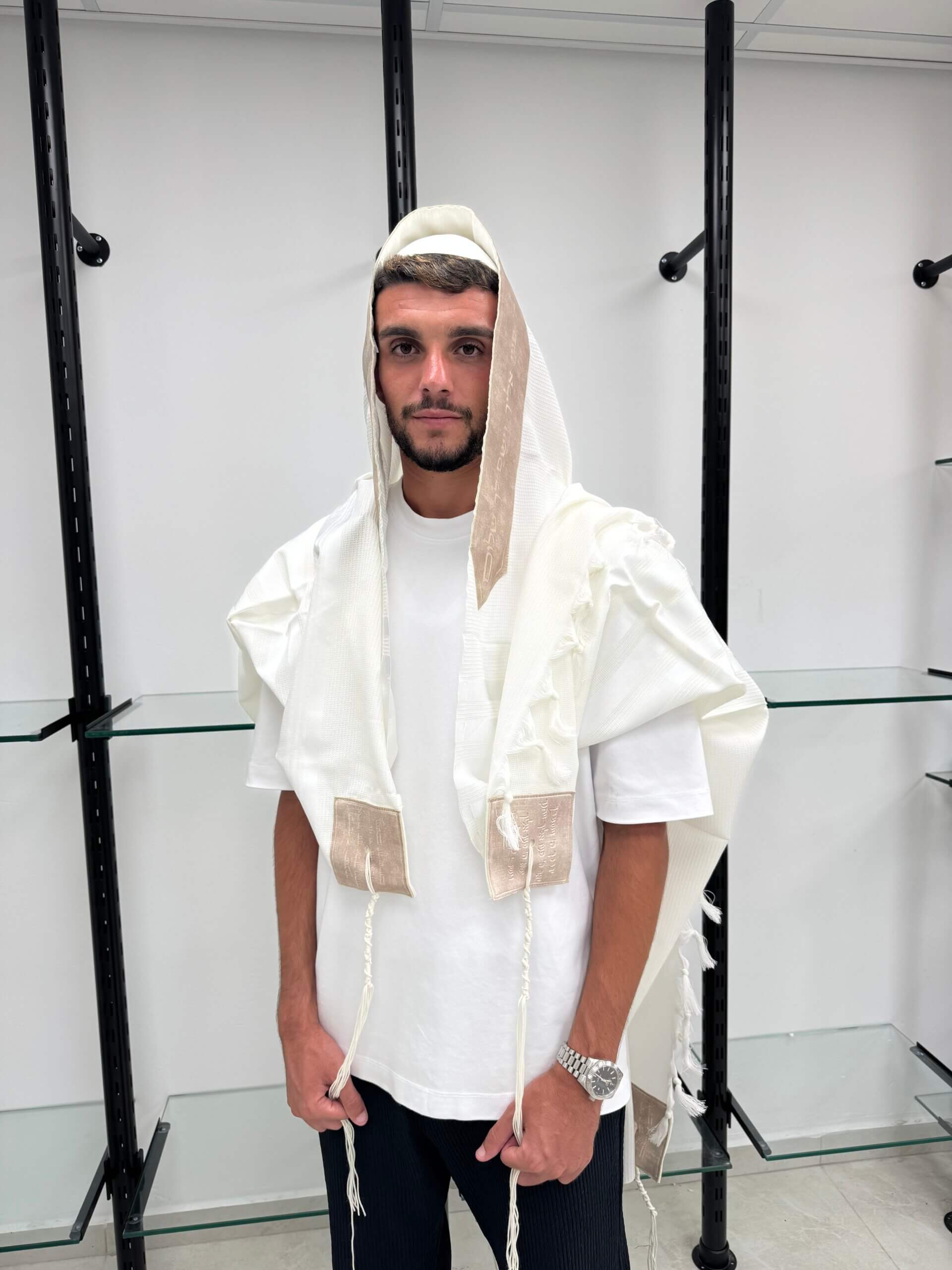טלית פרימיום העשוייה מ 100% צמר רחלים משובח, בעלת מראה יוקרתי, נעימה על הגוף ולא מחליקה.