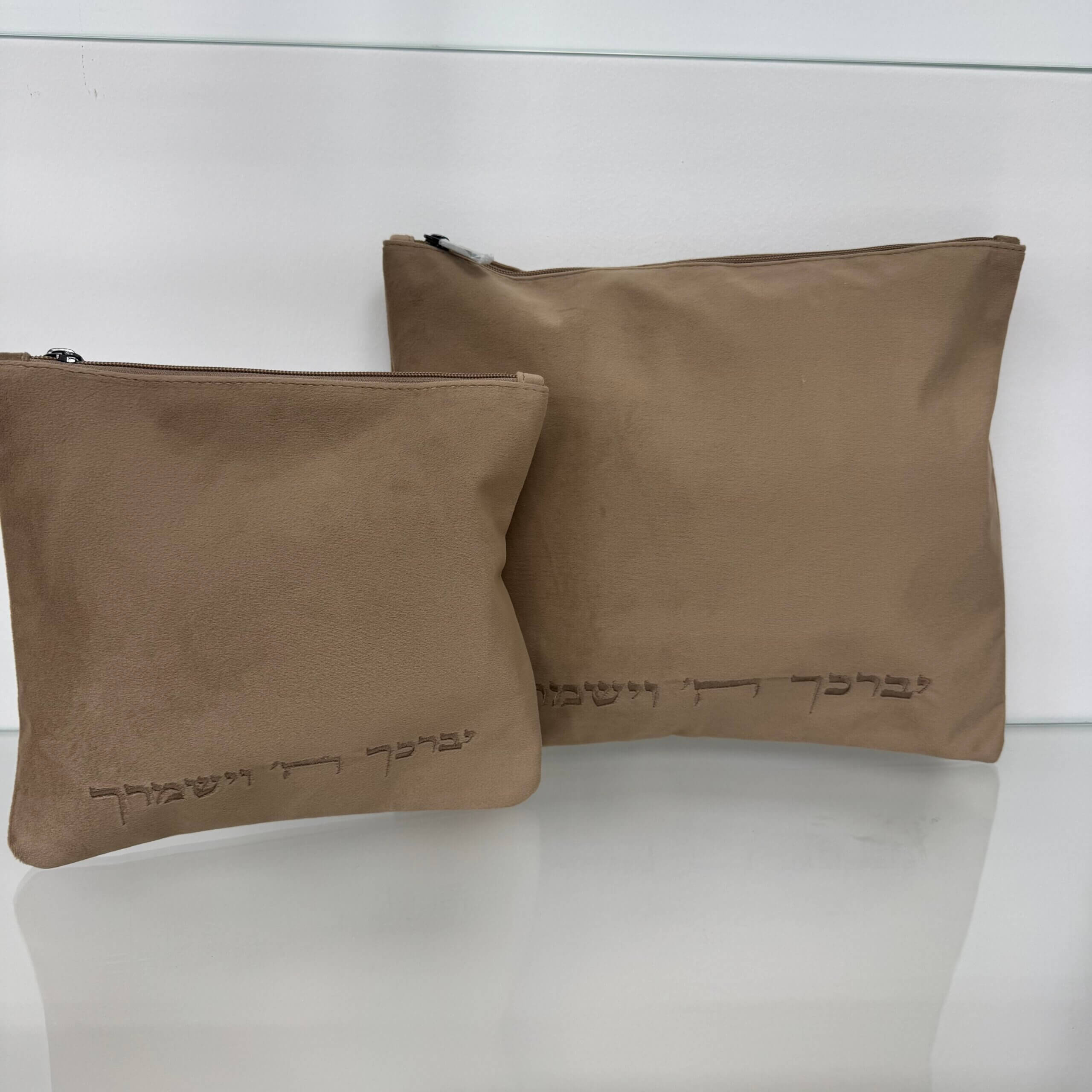 כיסויים לטלית ולתפילין דגם "רננו צדיקים" חום
