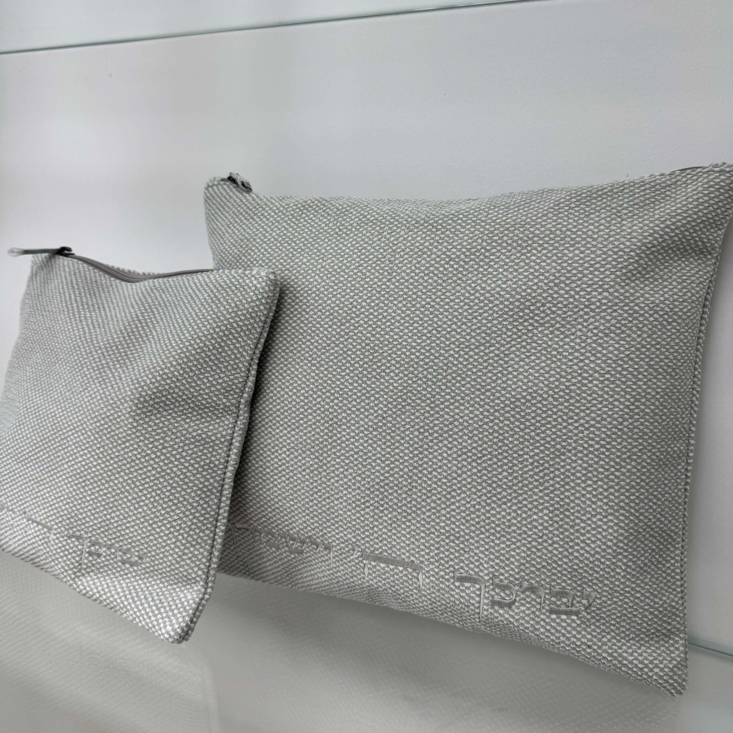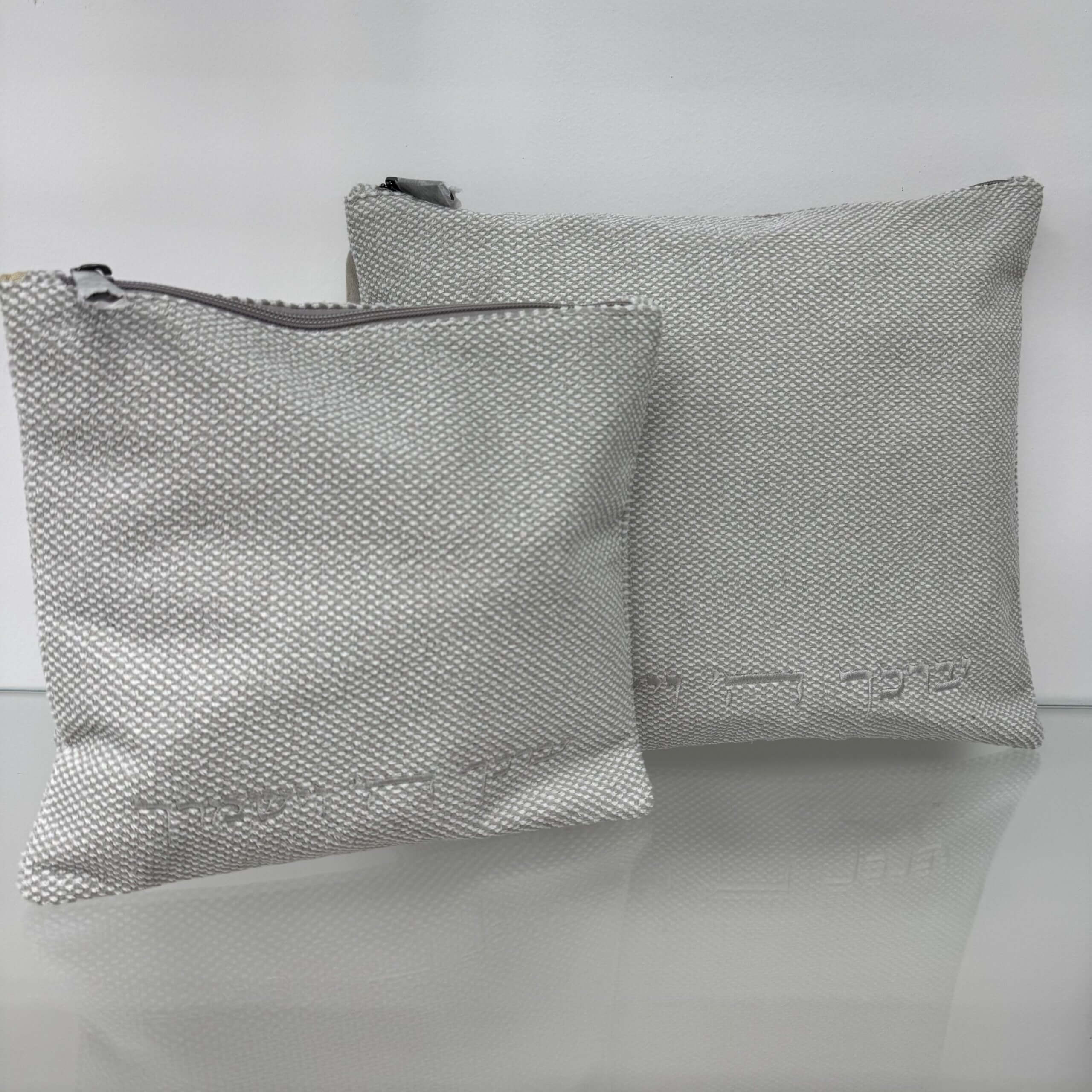 כיסויים לטלית ולתפילין מבד דגם "ישמח ישראל" אפור בהיר