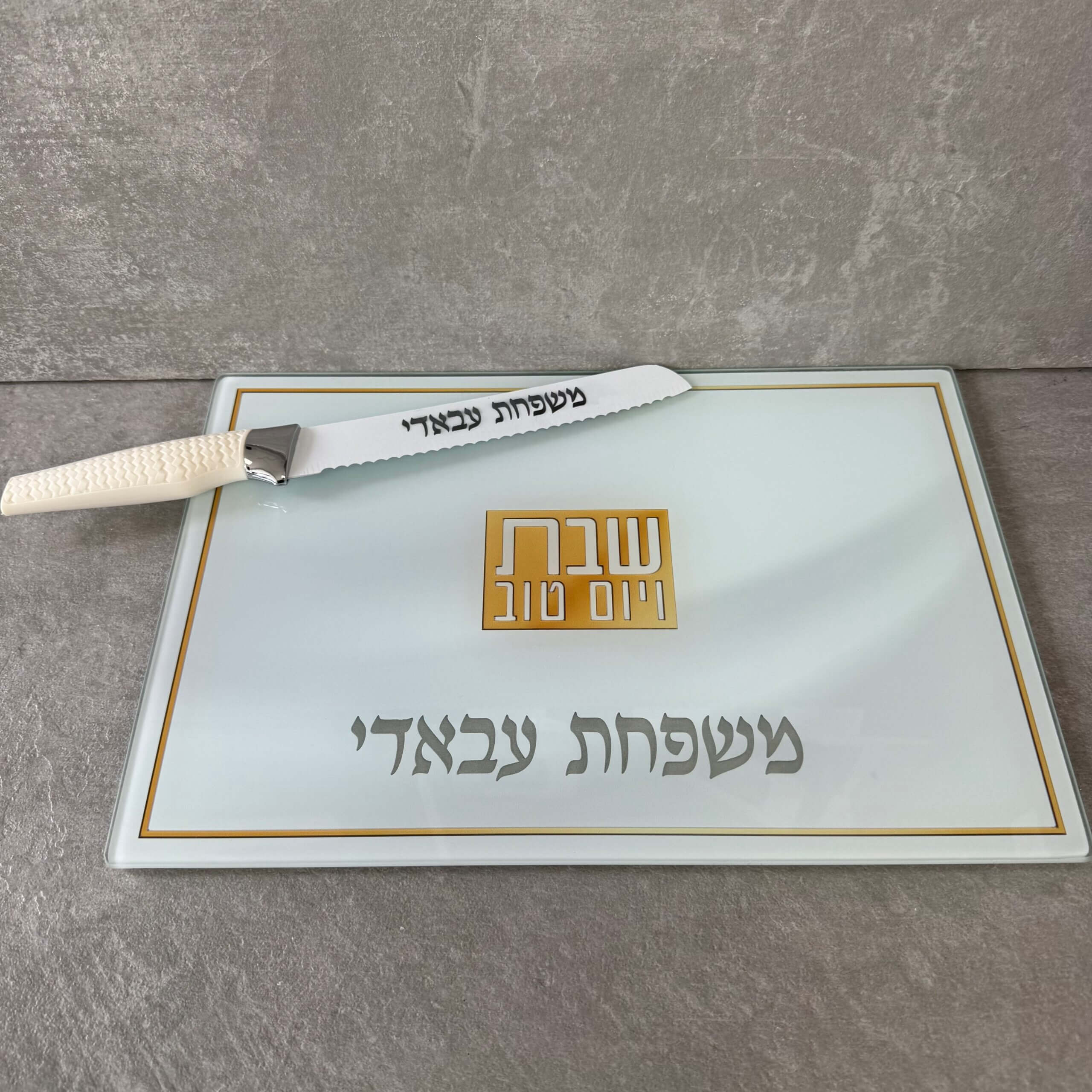 מגש לחלה+ סכין דגם שיש זהב בחיתוך לייזר