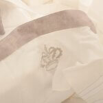 טלית ילדים מבד אקרילין עם תוספת עטרה מבד קטיפה משובח בצבע אבן עליה חריטה בלייזר- "יברכך".
