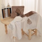 - כיפה בד פשתן עם רקמת שם בצבע חום.