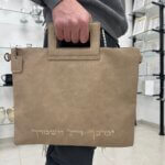 סט תיקים בעיצוב מושלם לטלית ולתפילין מהודר עשוי מדמוי פשתן צבע בז.